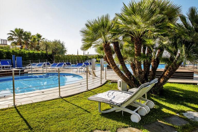 Sport, Unterhaltung: Pool (25 x 12 m), weiterer Pool mit Hydromassage (10 x 5 m, beheizbar), je ca. 9.4. bis 30.9., Liegewiese mit Liegen und Liegestühlen inklusive. Poolbar. Gegen Gebühr: Liegen am Strand.