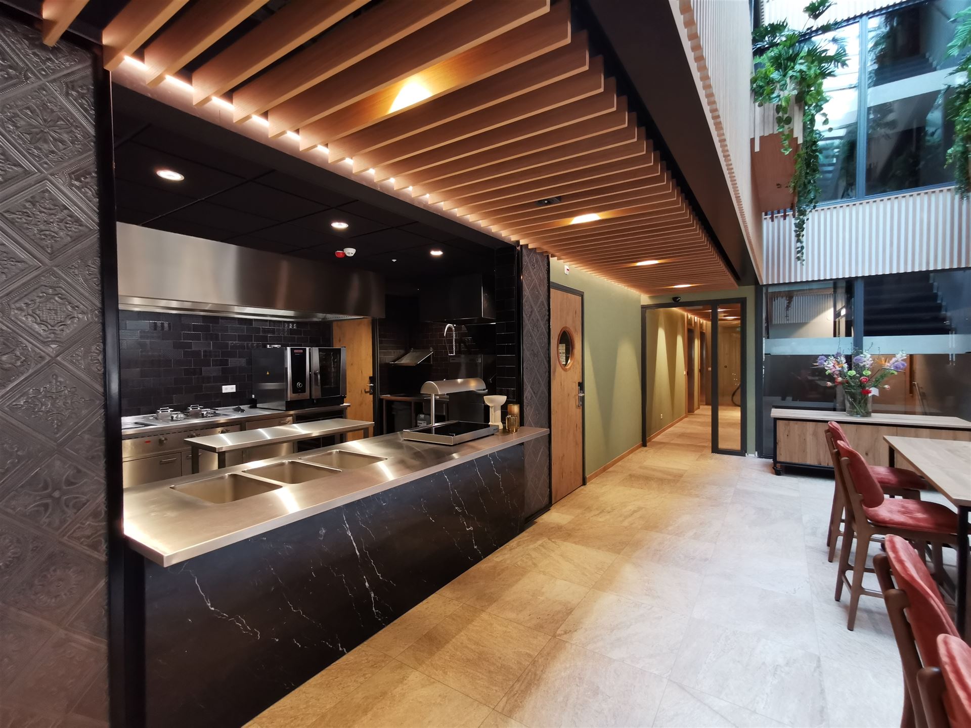 Für Gruppen gibt es eine angeschlossenen, professionellen Küche. Dies gilt allerdings ausschließlich für Gruppen, die einen eigenen Koch mitnehmen oder den Koch des nahegelegenen Restaurant buchen, so dass dieser vor Ort alles zubereiten kann.