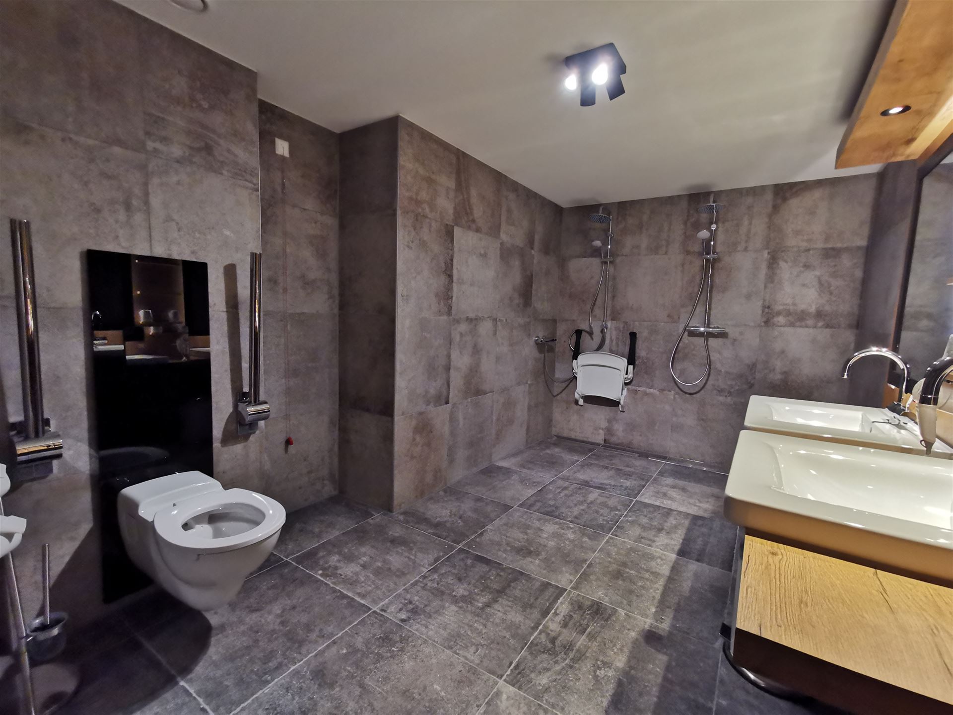 Alle Appartements verfügen über mind. 2 Pflegebetten und entsprechend barrierefreies Badezimmer mit einer befahrbaren Dusche mit Sitzgelegenheit, Haltegriffe, WC höhenverstellbar, 2 Waschbecken, diese sind auf zwei verschiedenen Höhen und beide unterfahrbar, Notrufseil. Die Küchenzeile ist ebenfalls unterfahrbar und höhenverstellbar.