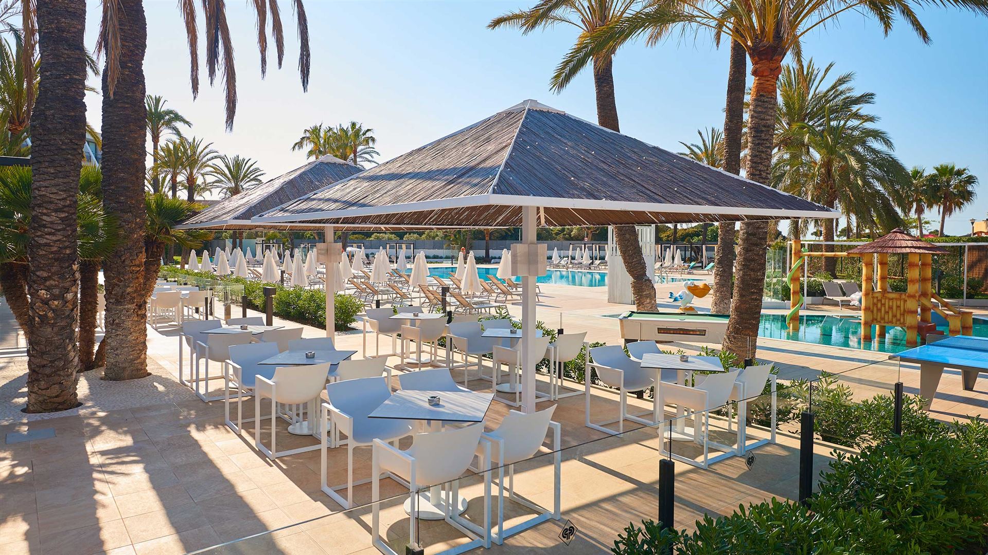 Die ansprechend renovierte Hotelanlage verteilt sich übersichtlich auf mehrere Gebäude. 24-Rezeption, WLAN/Internetecke, a-la-carte Restaurant (mit Michelin-Stern), Themenrestaurants, Bars, Hallenbad (bedingt barrierefrei), Friseur, medizinische Versorgung (gegen Gebühr), Wäscheservice (gegen Gebühr). Es besteht die Möglichkeit der Nutzung des Aquaparks.