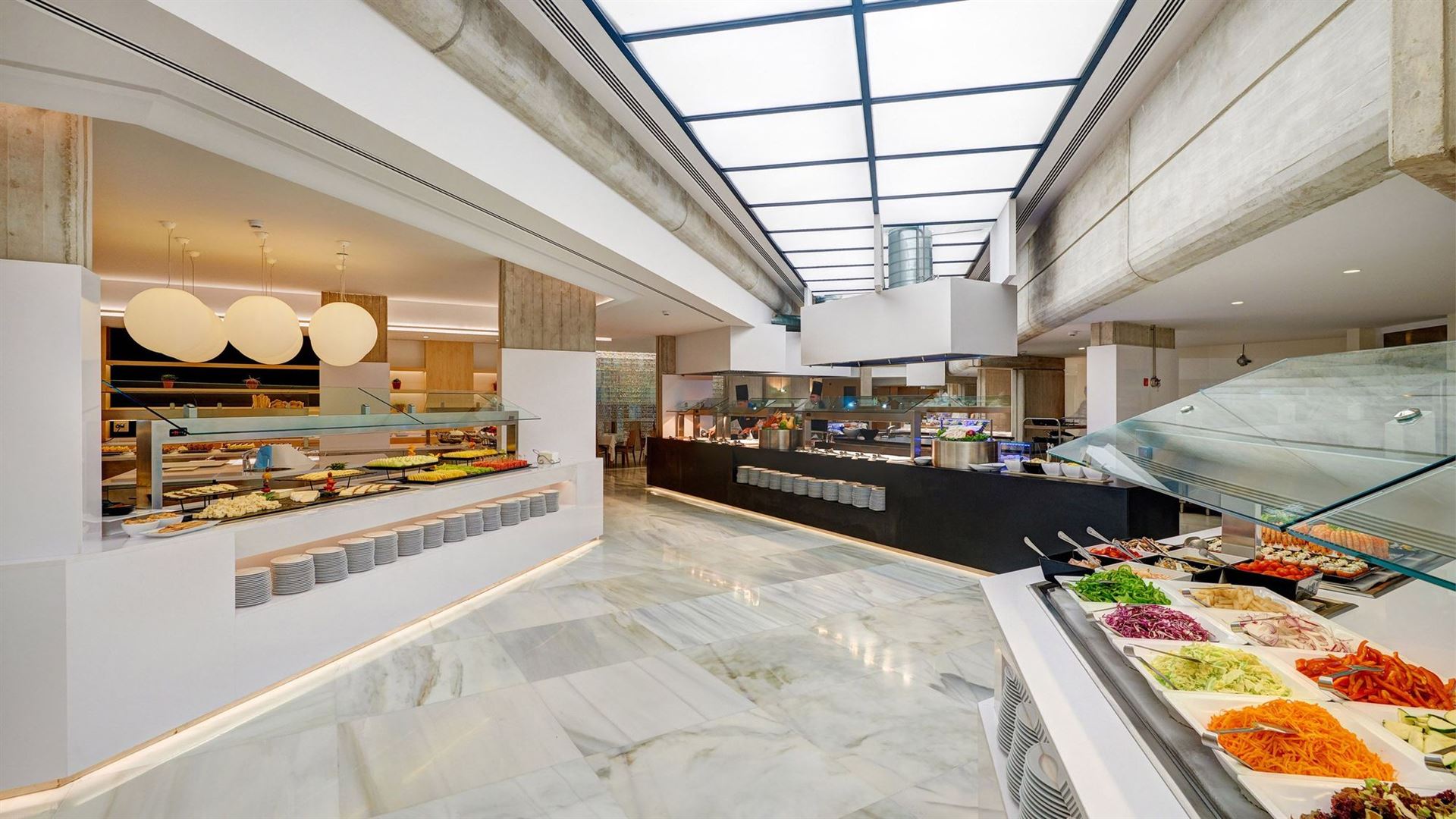 Halbpension in Buffetform. 1x pro Woche jeweils ein Galabuffet und ein mallorquinisches Abendessen. 1x pro Aufenthalt Abendessen im Japanischen oder Tapas- Restaurant. Zum Abendessen wird um angemessene Kleidung gebeten.