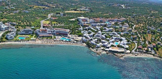 Die weitläufige Hotelanlage besteht aus 2 Hauptgebäuden und einem Bungalowbereich im Stil eines Dorfes. Das Hotel verfügt über 680 Zimmer und bietet eine großzügige Empfangshalle mit 24-Std.-Rezeption, mehrere Lifte, Aufenthaltsräume mit TV, Internetecken (inklusive), High Speed Wi-Fi (inklusive), 2 Hauptrestaurants, 4 Themenrestaurants, 2 Snack Points und 8 Bars. Zu den weiteren Einrichtungen zählen eine Diskothek, Minimarkt, eine Boutique, eine Juwelier, Friseur, Zimmer für späte Abreisen, Wäscherei,Tagungsraum, Parkplatz, Fitnesscenter (inklusive), Freilichtkino "Cine Creta Maris" sowie ein Hallenbad (beheizt).