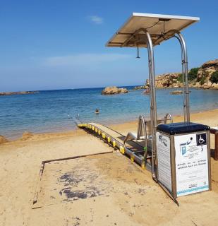 Am Strand gibt es für behinderte Gäste einen "Badesitz auf Schienen", um auch das Bad im Meer genießen zu können. (Siehe Bilder)