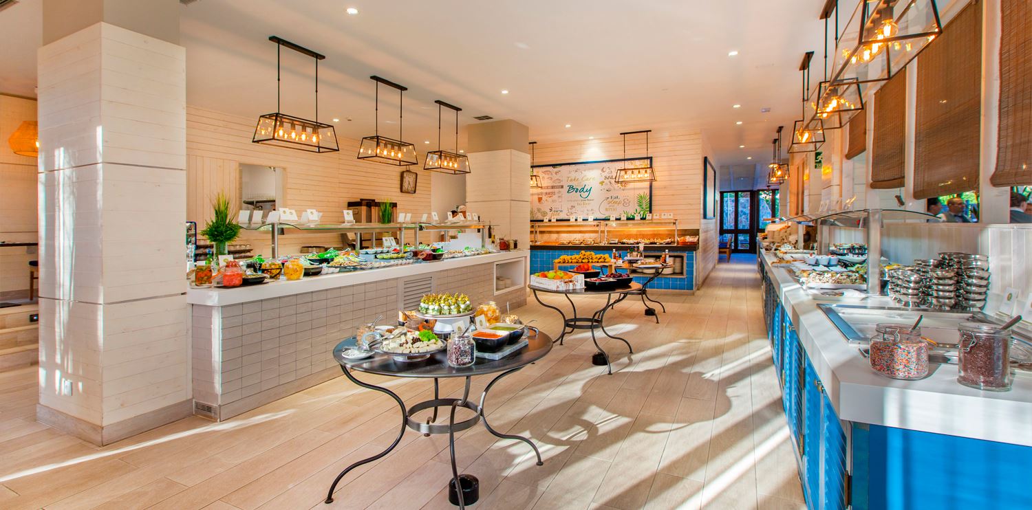 Halbpension oder All Inklusive. Alles in Buffetform, Show-Cooking,