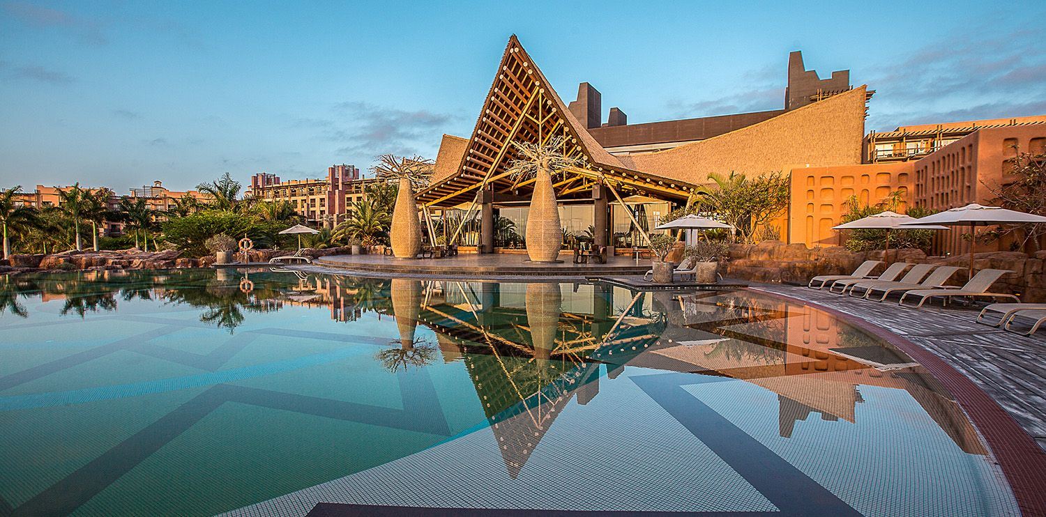 Das 2009 eröffnete Hotel wurde ganz im Thema "Afrika" gestaltet. Das spektakuläre und außergewöhnliche Resort wurde auf ca. 72.000 qm; erbaut. Ca. 500 Meter von den Dünen, und dem Sandstrand von Maspalomas entfernt. Die Uferpromenade erreicht man in wenigen Gehminuten. Zwischen Strandpromenade und dem Hotel findet man Geschäfte, Restaurants, Bars und das Einkaufcenter "Varadero.