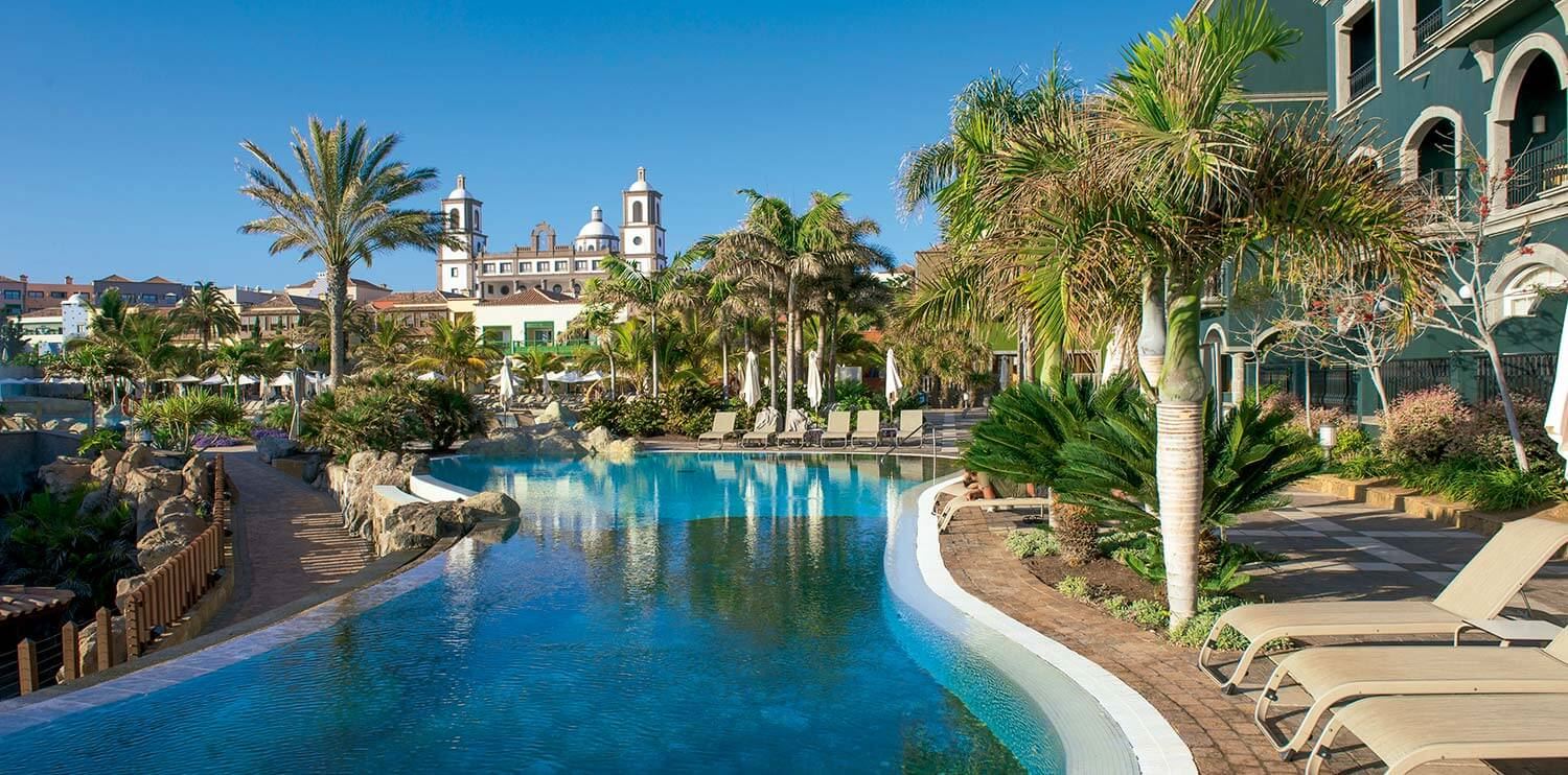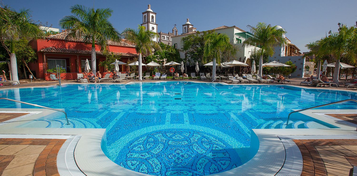 wohl einer der schönsten Urlaubsadressen auf der Insel! Luxuriöses Hotel im kanarischen Stil in Form eines Dorfes. Ganz außergewöhnlich ist die Hotelhalle mit Rezeption, welche der Kathedrale von Agüimes auf Gran Canaria nachgebaut wurde.