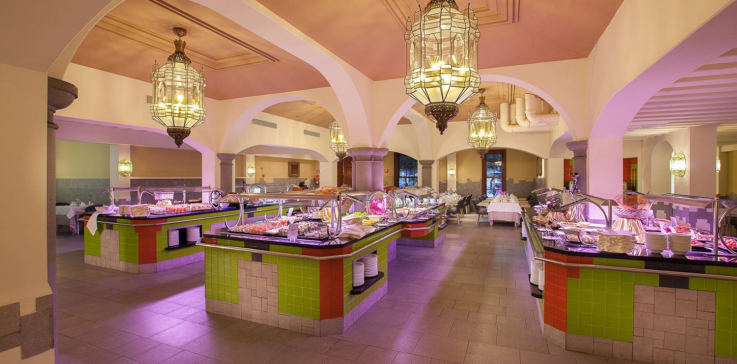 Reichhaltiges Frühstücks-und Abendbuffet, Themenabende, Show-Cooking. Entsprechende Abendgarderobe zu den Mahlzeiten erwünscht.