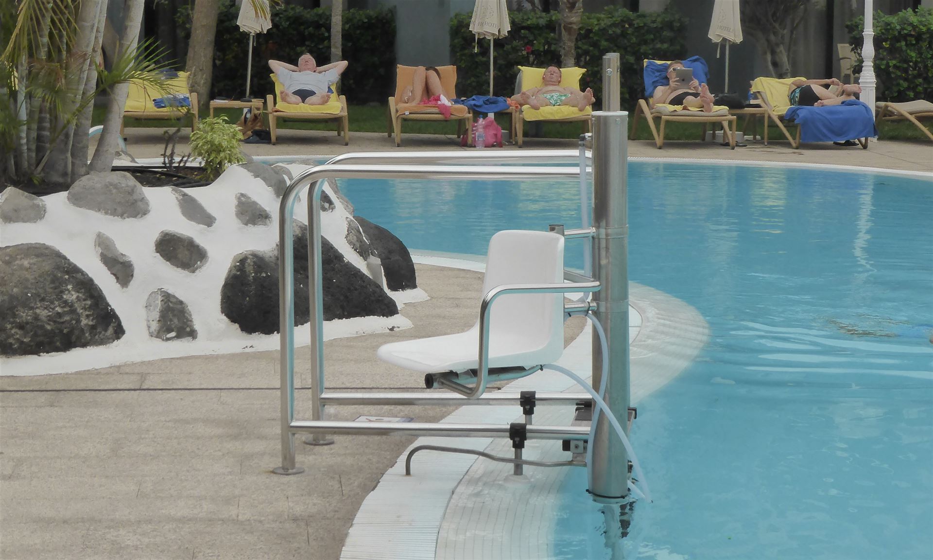 Unterbringung: Modernes Design, hell eingerichtet, Badezimmer mit Föhn, Bademantel, Balkon oder Terrasse, Klimaanlage, Telefon, Sat.-TV, Musikkanal sowie WLAN, Minibar und Safe. Die rollstuhlgeeigneten Doppelzimmer sind in der Kat. Superior Garten-/Poolseite mit Terrasse. Über die Terrasse kommt man direkt auf den Poolbereich mit Pool-Lifter.