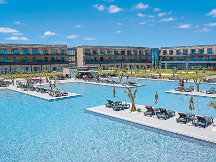Das Hotel ist hufeisenförmig angelegt, zum Meer hin offen mit einer sehr schönen und weitläufigen Poolanlage mit Wiesenflächen und Wege dazwischen. Der Ausstattungsstil ist sehr modern und in klaren Linien gehalten. Das Hotel bietet eine Rezeption, Buffet- und À-la-carte-Restaurant, eine Bar, WLAN, Wäscherei, Spa-Bereich und ein Hallenbad. Poolbar und Sonnenterrasse mit Liegen und Schirme. Pooltücher gegen Kaution erhältlich.