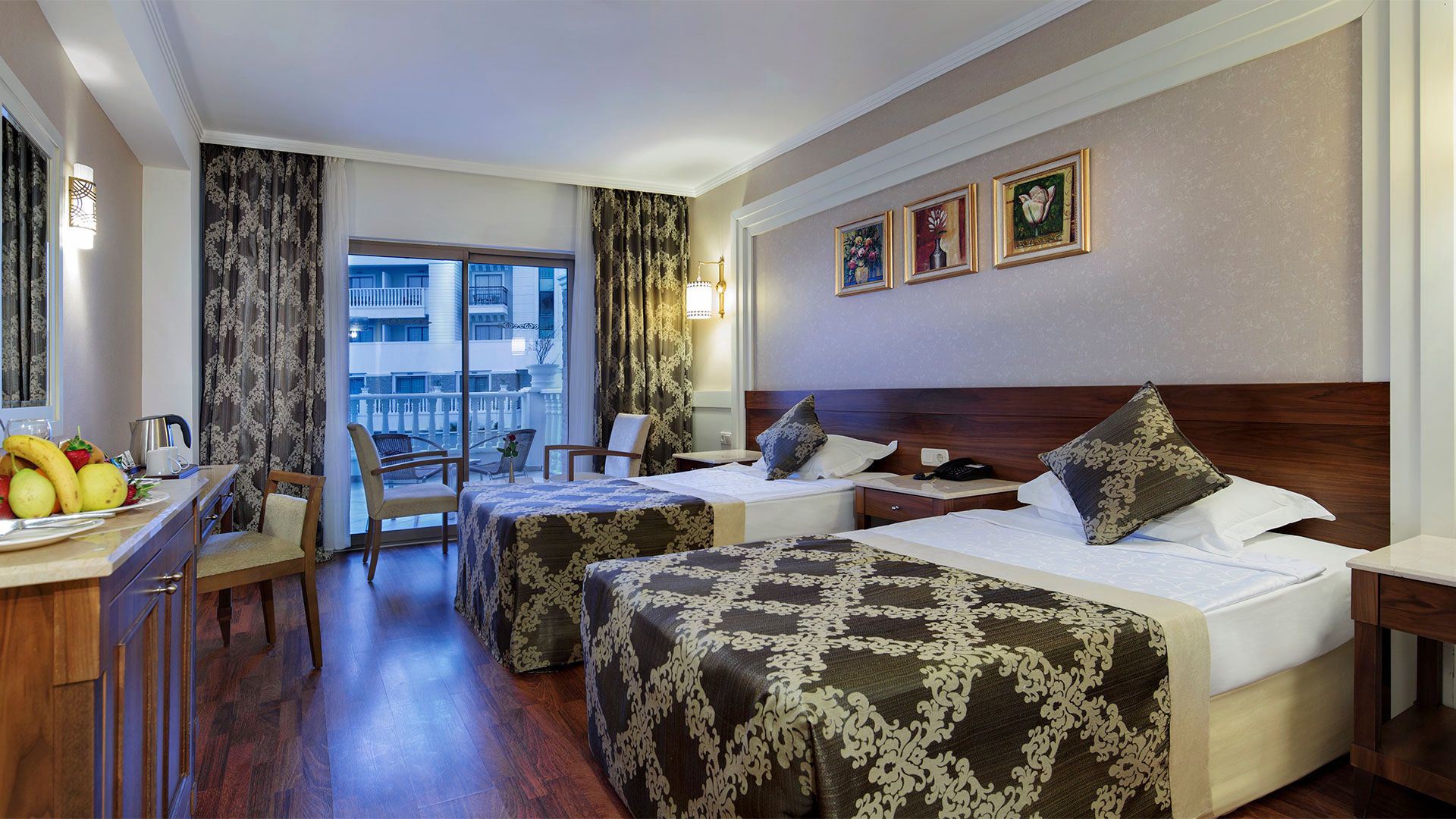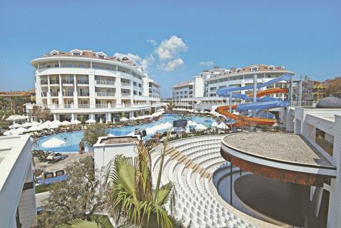 Das moderne Hotel der beliebten ''Alba''-Kette verfügt über insgesamt 324 Zimmer auf fünf Etagen. Zu den verschiedenen Einrichtungen zählen der großzügige Empfangsbereich mit Rezeption, Lifts, einladende Sitzgruppen und Lobbybar. Weiterhin ein Buffetrestaurant mit Terrasse, zwei À-la-carte-Restaurants (Fisch und Asiatische Küche), mehrere Bars, Sat.-TV Raum, Diskothek, Souvenirshop und Kiosk, Hallenbad (saisonbedingt beheizt) und Jacuzzi sowie der moderne Spa- und Wellnessbereich. Wi-Fi ist in der Lobby, Lobby Bar und Pool Bar inklusive, in den Zimmern und weiteren Bereichen gegen Gebühr. In der gepflegten Gartenanlage befindet sich neben dem Amphitheater für die Abendanimation auch die Süßwasser-Swimmingpoollandschaft mit vier Wasserrutschen (stundenweise und wetterbedingt) und separatem Kinderpool, Sonnenterrasse und Pool-/Snackbar. Liegen (integrierte Auflagen), Badetücher (Wechsel ein Mal pro Tag) und Sonnenschirme stehen am Pool am Strand (mit Beachbar/wetterbedingt) für die Gäste kostenlos zur Verfügung.