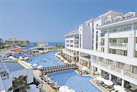 Das moderne Familienhotel befindet sich im aufstrebenden Feriengebiet von Colakli. Es liegt direkt, nur durch die beliebte Strandpromenade getrennt, am langen flach abfallenden hoteleigenen Sandstrand. Die Entfernung zur antiken Stadt Side beträgt ca. 8 km. Transferzeit vom Flughafen ca. 50 Min. mit Taxi.