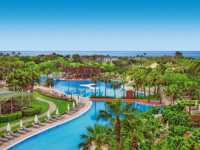 Das luxuriöse Urlaubsresort der bekannten Barut-Hotelkette liegt auf einem 110.000 m² großen Grundstück im Tourismusgebiet von Lara, im Ortsteil Kundu. Das Komfort-Hotel verfügt über insgesamt 463 Zimmer verschiedener Typen, die sich auf das Haupthaus mit 10 Etagen (drei Lifts vorhanden) und die zwei- bis vierstöckigen Gartengebäude verteilen (Lifts vorhanden). Zu den vielen Hoteleinrichtungen zählen die moderne Lobby mit Rezeption, gemütliche Sitzecken (Wi-Fi ist in den gesamten Hotelbereichen inklusive) und Lobbybar sowie das Buffetrestaurant mit Terrasse, verschiedene À-la-carte-Restaurants (acht, nach Verfügbarkeit/Reservierung unbegrenzt nutzbar), Patisserie, diverse Bars, mehrere Konferenzräume, Nightclub, ein Minimarkt, verschiedene Geschäfte, Friseur, Kino, das schöne Meerwasser-Hallenbad mit separatem Kinderbecken sowie das 2.000 m² große Wellness- und Spa-Center. In der weitläufigen Gartenanlage befinden sich insgesamt vier Swimmingpools, einer davon bei den Gartengebäuden und einer mit Wasserrutschen (stundenweise und saisonbedingt), Poolbar, Sonnenterrassen und die Beach- und Cocktailbar. Am Pool und am Strand (Badesteg mit Liegen und Sonnendach) sind Sonnenschirme, Liegen und Badehandtücher für unsere Gäste inklusive. Der Pool verfügt über einen Pool-Lifter und eine Rampe!