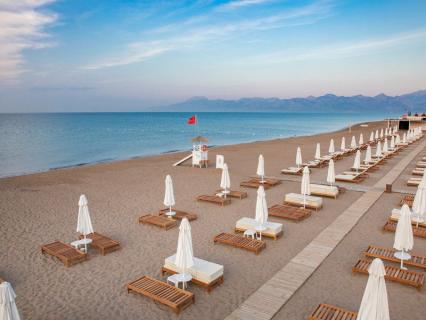 Das attraktive Strandhotel ist direkt am Sandstrand von Antalya-Lara im Ortsteil Kundu gelegen. In etwa 1,5 Kilometer Entfernung befinden sich diverse Restaurants und Bars. Die Gäste haben zudem die Möglichkeit den Hotelbusservice zu nutzen. Den Flughafen von Antalya erreichen Sie nach ca. 10 Kilometern. Antalya und zahlreiche Einkaufsmöglichkeiten sind etwa 12 Kilometer vom Hotelgebäude entfernt und in ca. 15 Fahrminuten zu erreichen.