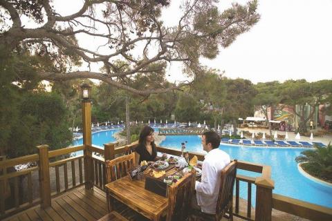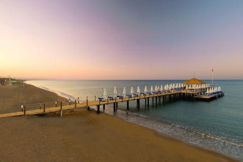 Die weitläufige Clubanlage für gehobene Ansprüche ist umgeben von Pinienwäldern und erstreckt sich auf einem Areal von rund 230.000 m², sie grenzt direkt an den langen Sand-/Kiesstrand von Sorgun. Die malerische Altstadt von Side erreichen Sie nach ca. 5 km.
