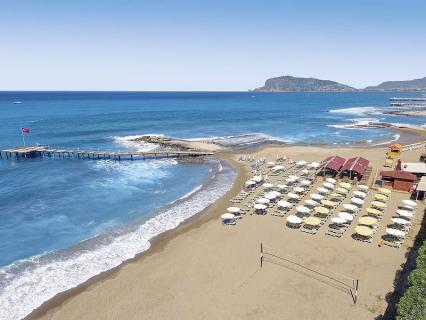 In zentraler Lage, nur durch die Hauptstraße vom langen Kies-/Sandstrand getrennt (Fußgänger-Unterführung vorhanden). Zum Ortszentrum von Alanya sind es ca. 5 km. Diverse Einkaufs- und Unterhaltungsmöglichkeiten befinden sich in unmittelbarer Nähe des Hotels.