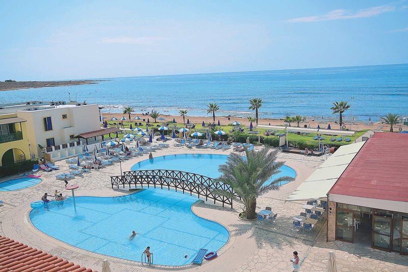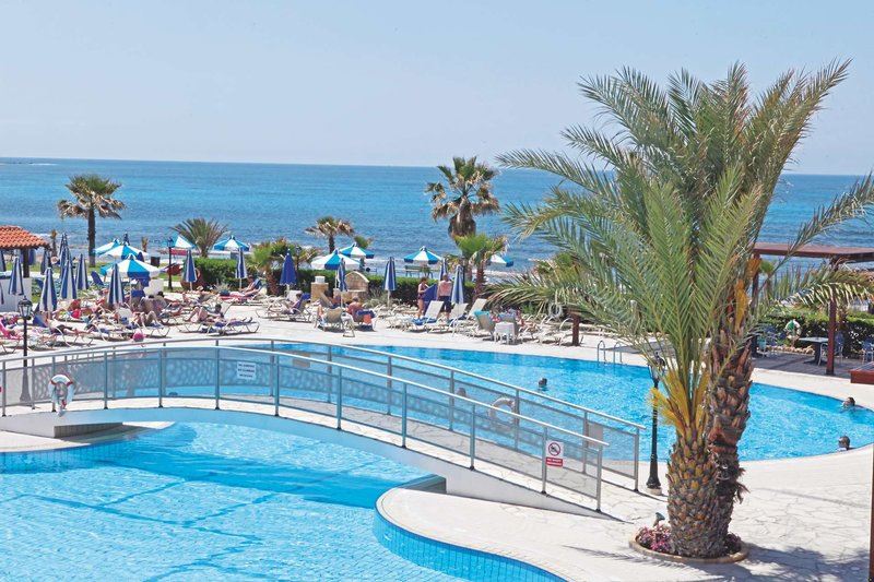 Lage: Nur durch die schmale Strandpromenade vom Meer getrennt. Das Aparthotel liegt an einer Sand-/Kiesbucht. Der angrenzende Strandweg führt innerhalb von ca. 20 Minuten zum malerischen Hafen von Pafos mit urigen Tavernen und Restaurants.