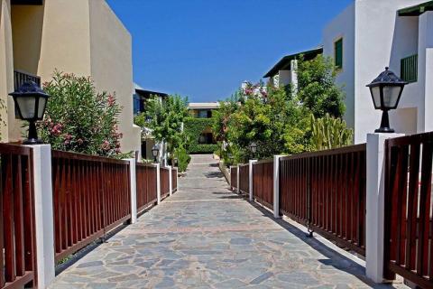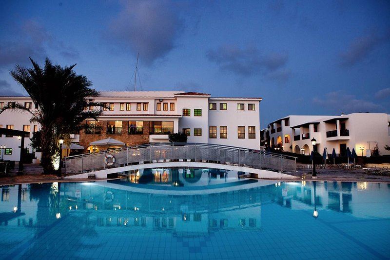 Die im Stil eines griechischen Dorfes erbaute Anlage besteht aus einem Hauptgebäude und 259 Wohneinheiten, welche auf kleine Häuschen verteilt und durch bunt bewachsene enge Gassen verbunden sind. Sie verfügt über Rezeption, Internetecke (gegen Gebühr), Wi-Fi im Rezeptionsbereich (inklusive), Restaurant, Taverne, Bar, Aufenthaltsraum, eine kleine Kapelle, Geschäfte (Minimarkt und Souvenirshop) und Waschsalon. In der schönen Gartenanlage befindet sich der Swimmingpool (Pool mit Brücke), Kinderbecken und Sonnenterrasse, Liegen, Schirme und Badetücher sind am Pool und am Strand inklusive.